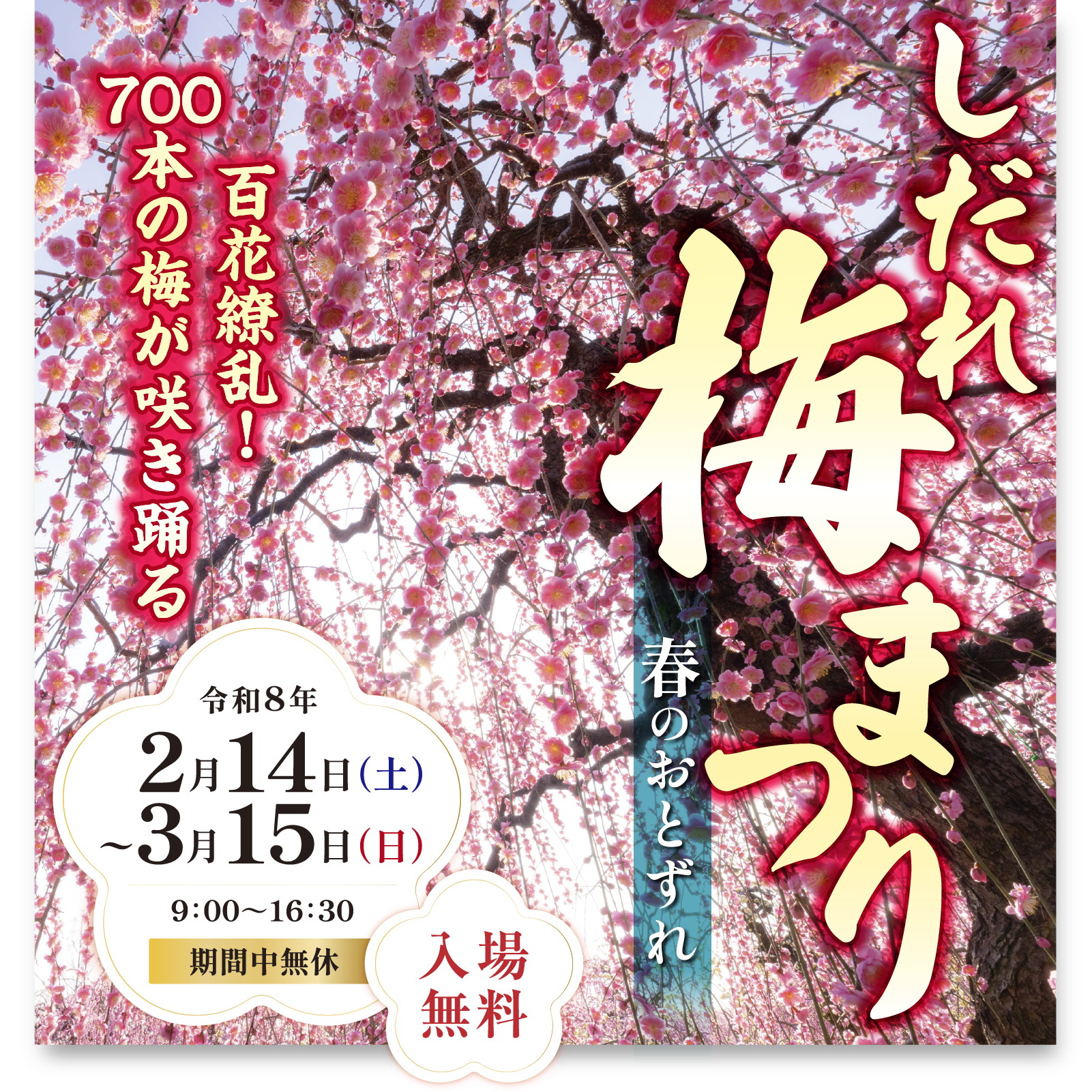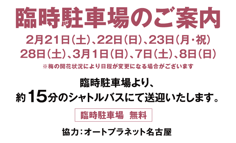 しだれ梅まつり期間中の駐車場は有料です。