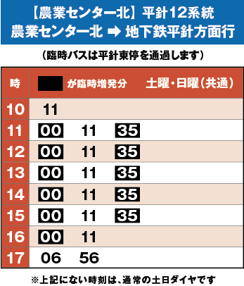 ●地下鉄鶴舞線「平針」駅より、市バス「地下鉄 原」行き「農業センター北」下車、徒歩約5分