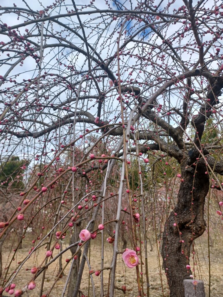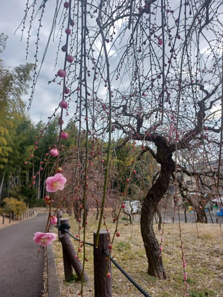 2月15日 開花状況「咲きはじめ」 お知らせ 2026.02.15 昨日の温かさでいくつかのつぼみが開き、農業指導館裏の梅が咲き始めています。 梅園全体がさらに桃色に色づいてきました。 しだれ梅園入口 しだれ梅園 農業指導館裏 農業指導館裏